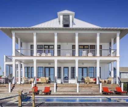 A stunning white-themed house with a sleek design and a luxurious swimming pool at the front, offering a modern and elegant outdoor living space.